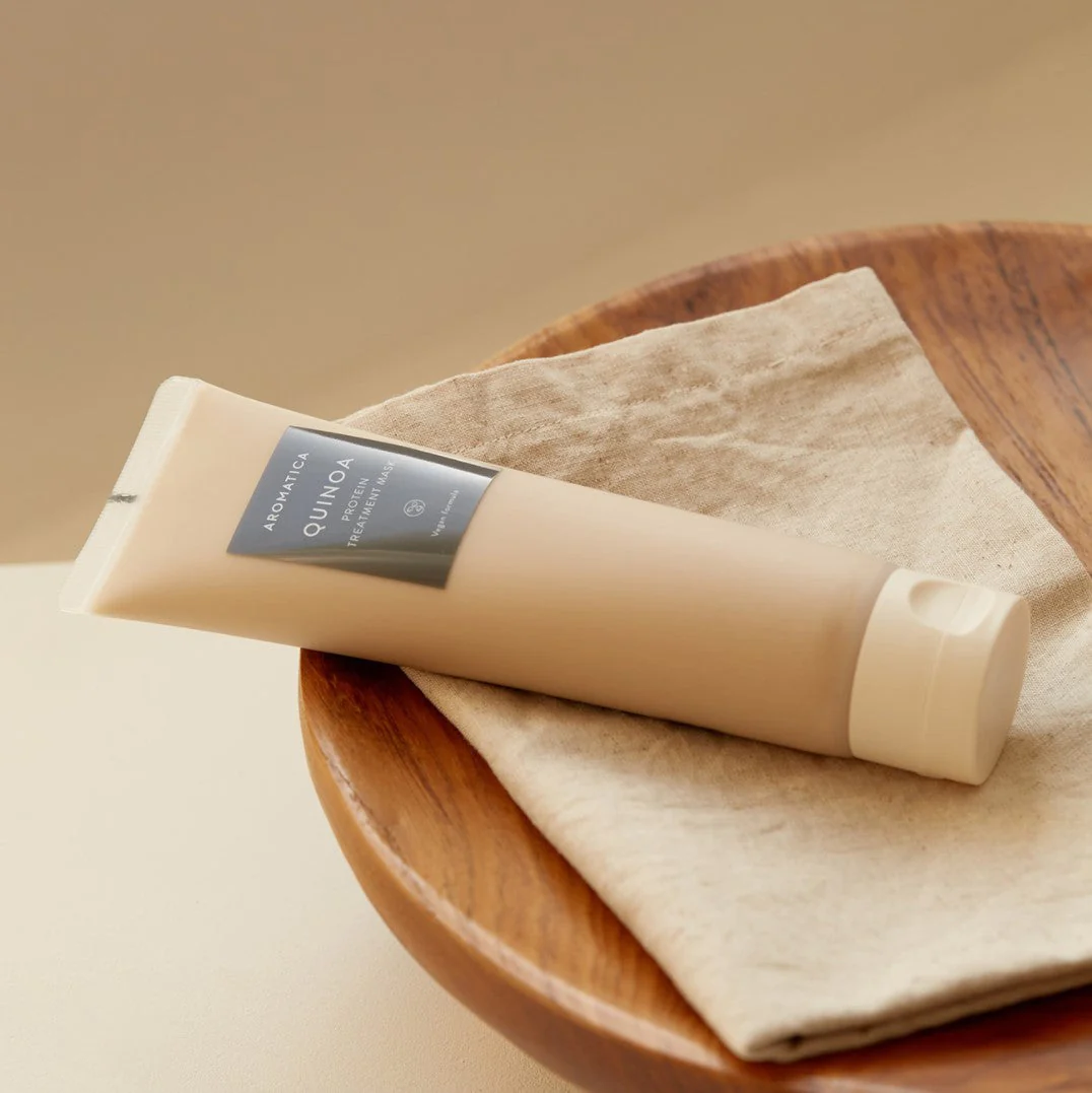 Enrichi à 87 % en ingrédients d'origine naturelle, dont l'extrait de quinoa et la protéine LPP, le Quinoa Protein Treatment Mask de Aromatica va protéger les cuticules et les pointes abîmées pour rendre les cheveux plus lisses et résistants.