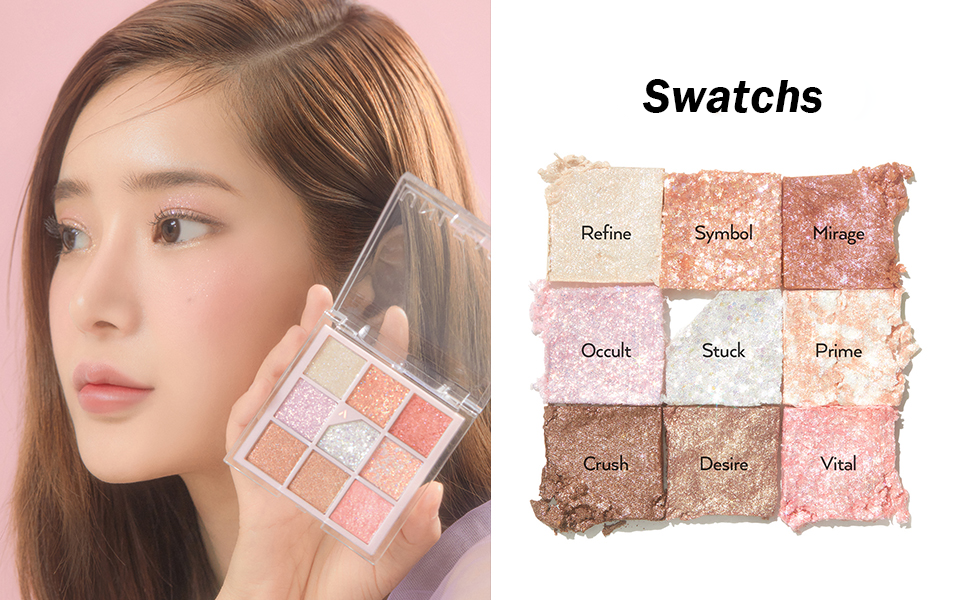 Palettes de 9 fards à paupières pressés vegan, la Glitterpedia Eye Palette de Unleashia est un mélange de teintes pailletées, scintillantes et mates.