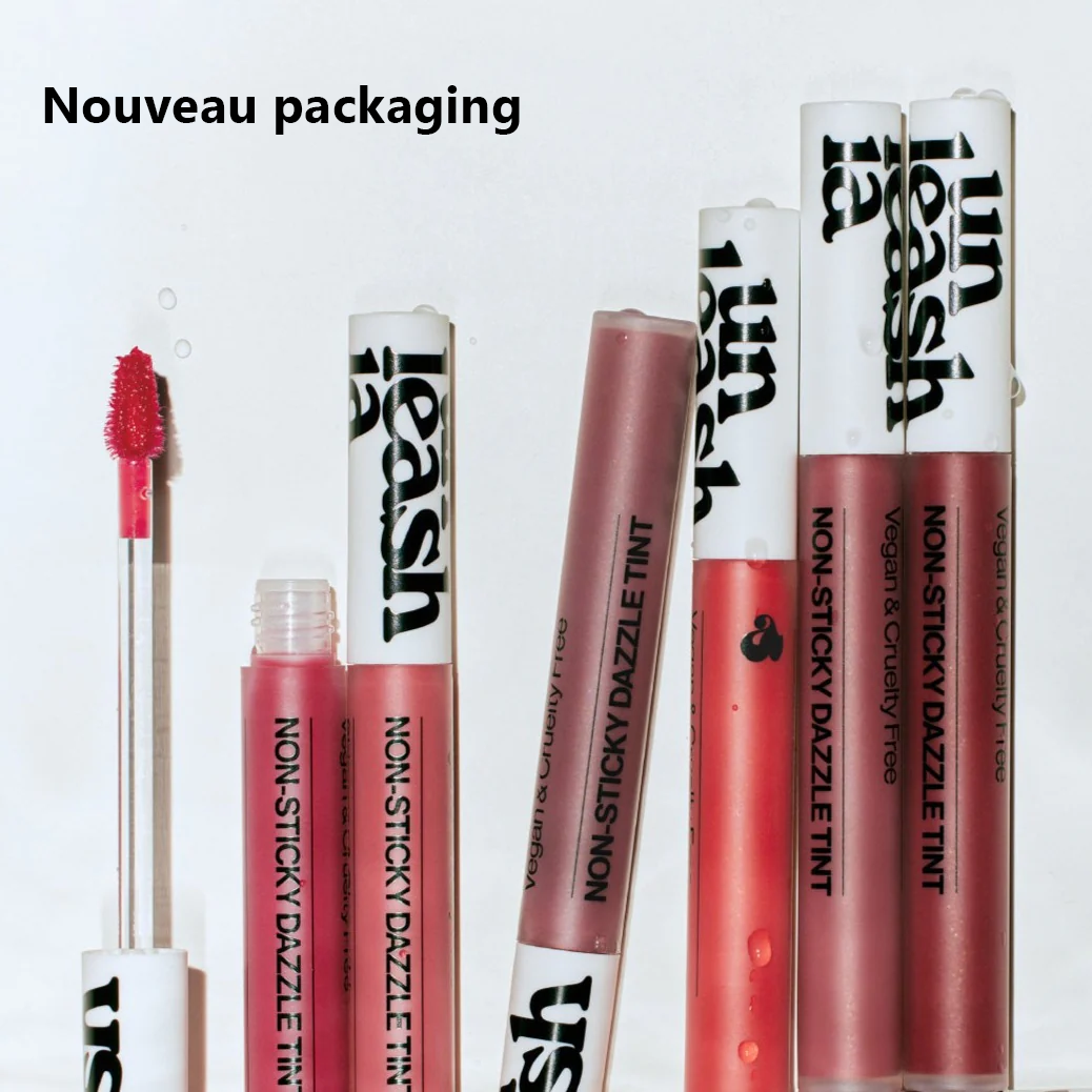 Les Non-Sticky Dazzle Tint de Unleashia sont des encres à lèvres légères enrichies de 8 types différents d'acide hyaluronique et de squalane pour offrir un soin optimal des lèvres.