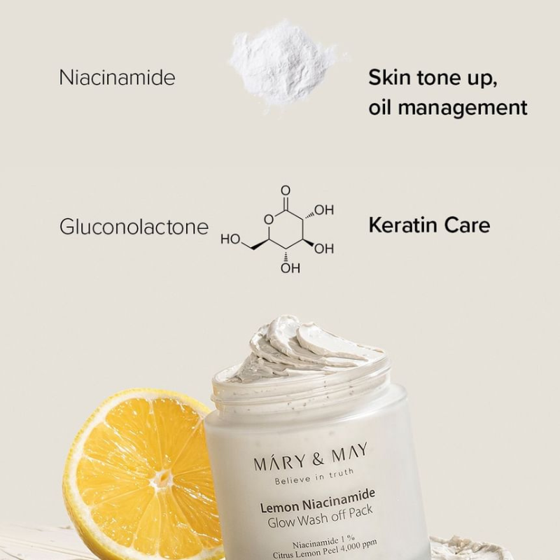 Prix unitaire / parMélange d'ingrédients vitaminés, dont la niacinamide et un dérivé de vitamine C, le Lemon Niacinamide Glow Wash Off Pack de Mary&May élimine les cellules mortes de la peau et éclaircit la peau terne.