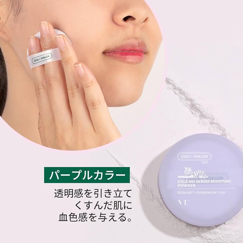 Prix unitaire / parPoudre fine conçue pour contrôler l'excès de sébum, la Cica No Sebum Moisture Powder de VT Cosmetics est enrichie du complexe CICAHYALON™ aux extraits d'hydrocotyle, de centella asiatica et d'acide hyaluronique, mais aussi en céramides et en ectoïne, pour améliorer l'hydratation, apaiser les irritations et protéger la peau des agressions extérieures.
