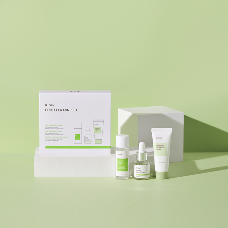 [Tea Tree Relief Toner] Melaleuca Alternifolia (Tea Tree) Leaf Water, Centella Asiatica Leaf Water, Butylene Glycol, Niacinamide, Glycerin, Water, Centella Asiatica (Gotu Kola) Extract, 1,2-Hexanediol, Betaine, Sodium Hyaluronate, Caprylyl Glycol, Polyglyceryl-4 Caprate, Portulaca Oleracea (Green Purslane) Extract, Brassica Oleracea Italica (Broccoli) Extract, Medicago Sativa (Alfalfa) Extract, Brassica Oleracea Capitata (Cabbage) Leaf Extract, Triticum Vulgare (Wheat) Germ Extract, Brassica Campestris (Rapeseed) Extract, Raphanus Sativus (Radish) Seed Extract, Allantoin, Ethylhexylglycerin, Dipotassium Glycyrrhizate, Aloe Barbadensis (Aloe Vera) Leaf Extract, Ormenis Multicaulis (Chamomile) Oil, Pentylene Glycol, Aspalathus Linearis (Rooibos) Extract, Glycyrrhiza Glabra (Licorice) Root Extract, Commiphora Myrrha (Myrrh) Resin Extract, Perilla Frutescens Leaf Extract, Yucca Schidigera Root Extract [Tea Tree Relief Serum] Melaleuca Alternifolia (Tea Tree) Leaf Water, Glycereth-26, Glycerin 1, 2-Hexanediol, Cellulose Gum, Beta-Glucan, Adenosine, Xanthan Gum, Chlorophyllin-Copper Complex, Yucca Schidigera (Yucca) Root Extract [Centella Calming Gel] Centella Asiatica Leaf Water, Melaleuca Alternifolia (Tea Tree) Leaf Water, Methyl Trimethicone, Acrylates/C10-30 Alkyl Acrylate Crosspolymer, Arginine, Dimethicone, Dimethicone/Vinyl Dimethicone Crosspolymer, Centella Asiatica Extract, Melaleuca Alternifolia (Tea Tree) Leaf Extract, Citrus Aurantium Bergamia (Bergamot) Fruit Oil, Aspalathus Linearis Extract, Yucca Schidigera Root Extract, Commiphora Myrrha Resin Extract, Limonene, Linalool