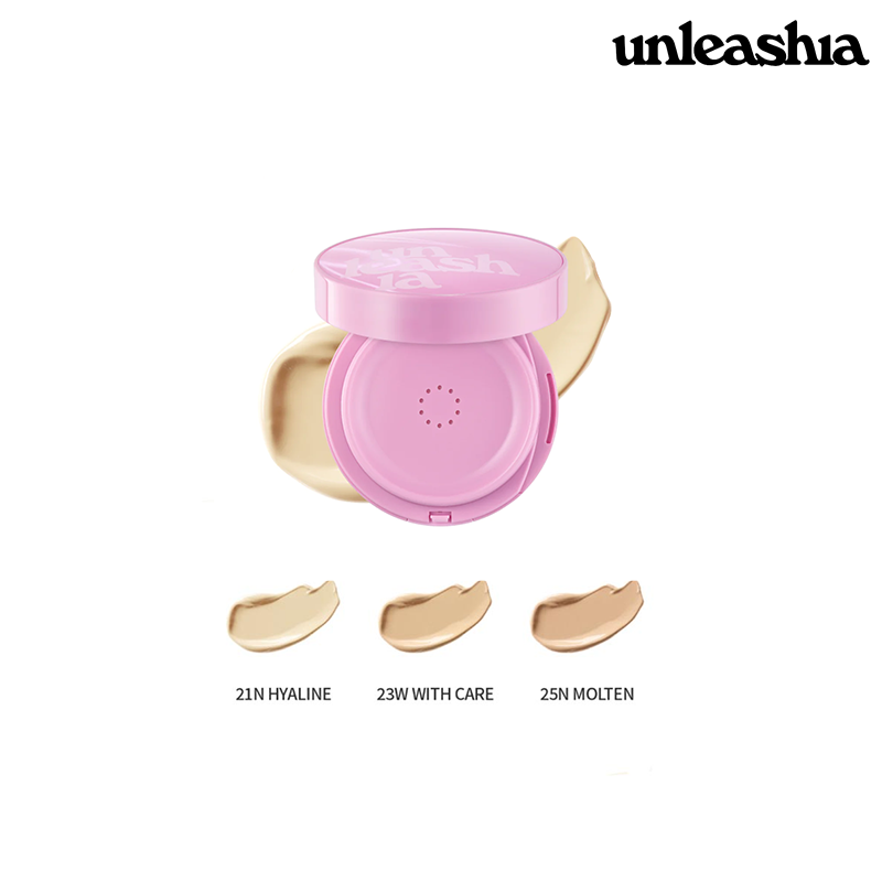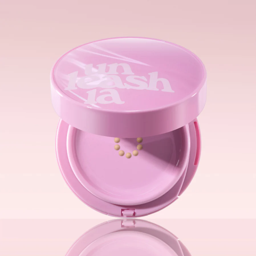 Le Don't Touch Glass Pink Cushion de Unleashia est un fond de teint cushion léger formulé avec de l'acide hyaluronique pour offrir une hydratation tout au long de la journée doublé d'une protection UV SPF50+ PA++++.