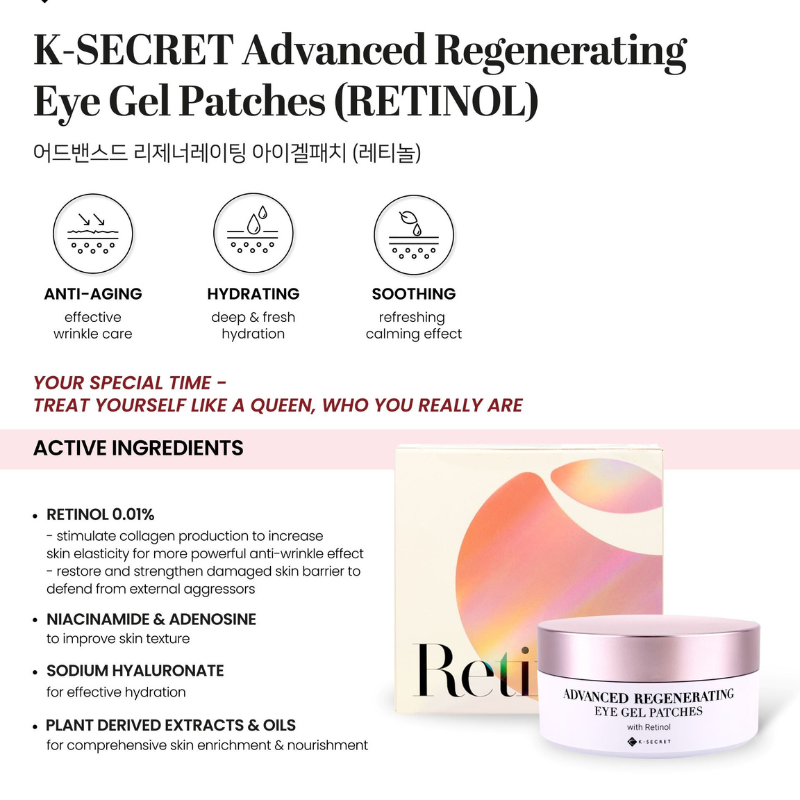 Les patchs hydrogels pour les yeux Advanced Regenerating de KSECRET aident à raffermir, apaiser et éclaircir la peau.