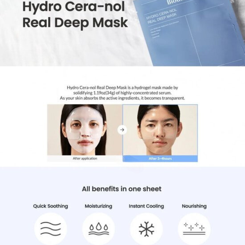 Prix unitaire / parMasque à base d'hydrogel l’Hydro Cera-nol Real Deep Mask de BIODANCE offre une hydratation en profondeur et nourrit la peau.