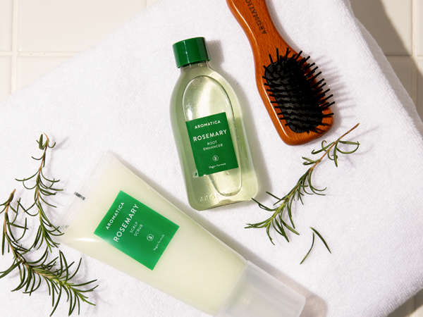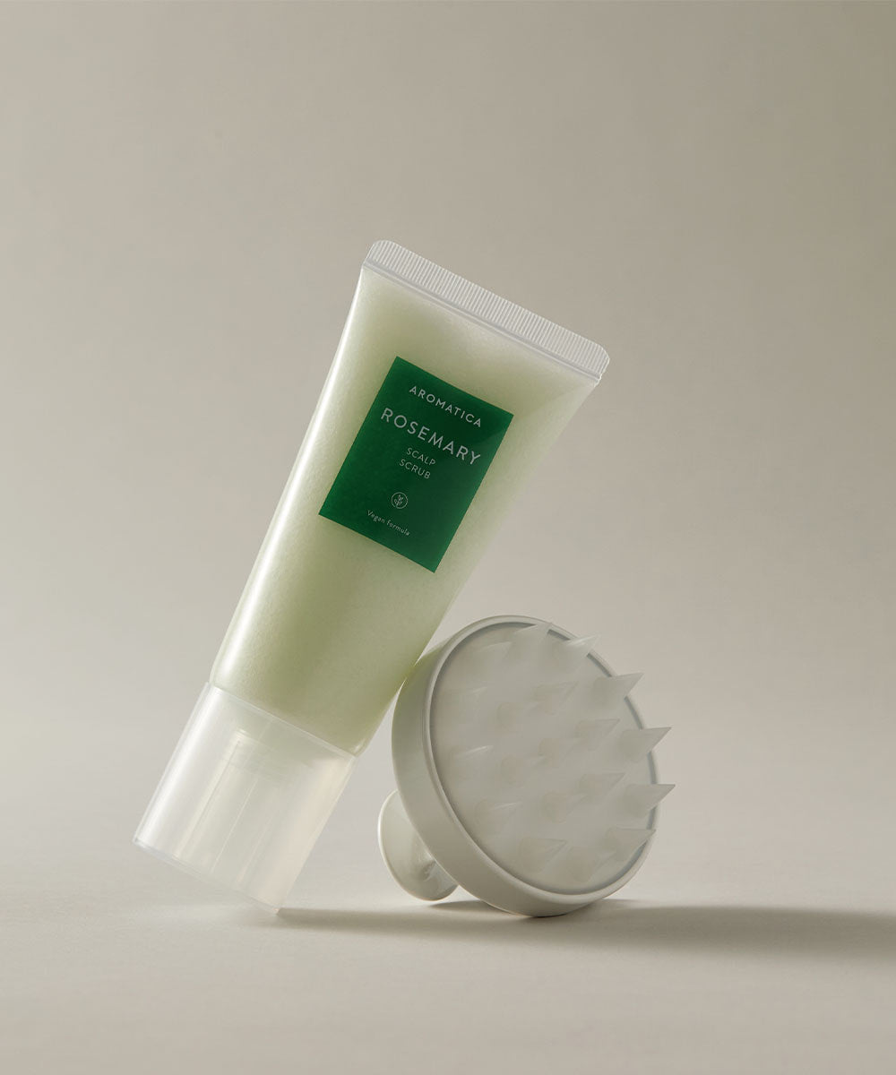 Gommage capillaire rafraîchissant, le Rosemary Scalp Scrub de Aromatica nettoie le cuir chevelu et le débarrasse des cellules mortes accumulées.