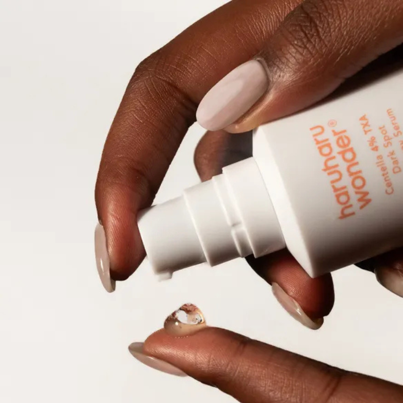 Le Centella 4% TXA Serum de Haruharu Wonder est un sérum vegan anti-hyperpigmentation puissant formulé avec de l'acide tranexamique (4%) et du niacinamide (4%) pour atténuer les taches et unifier le teint.